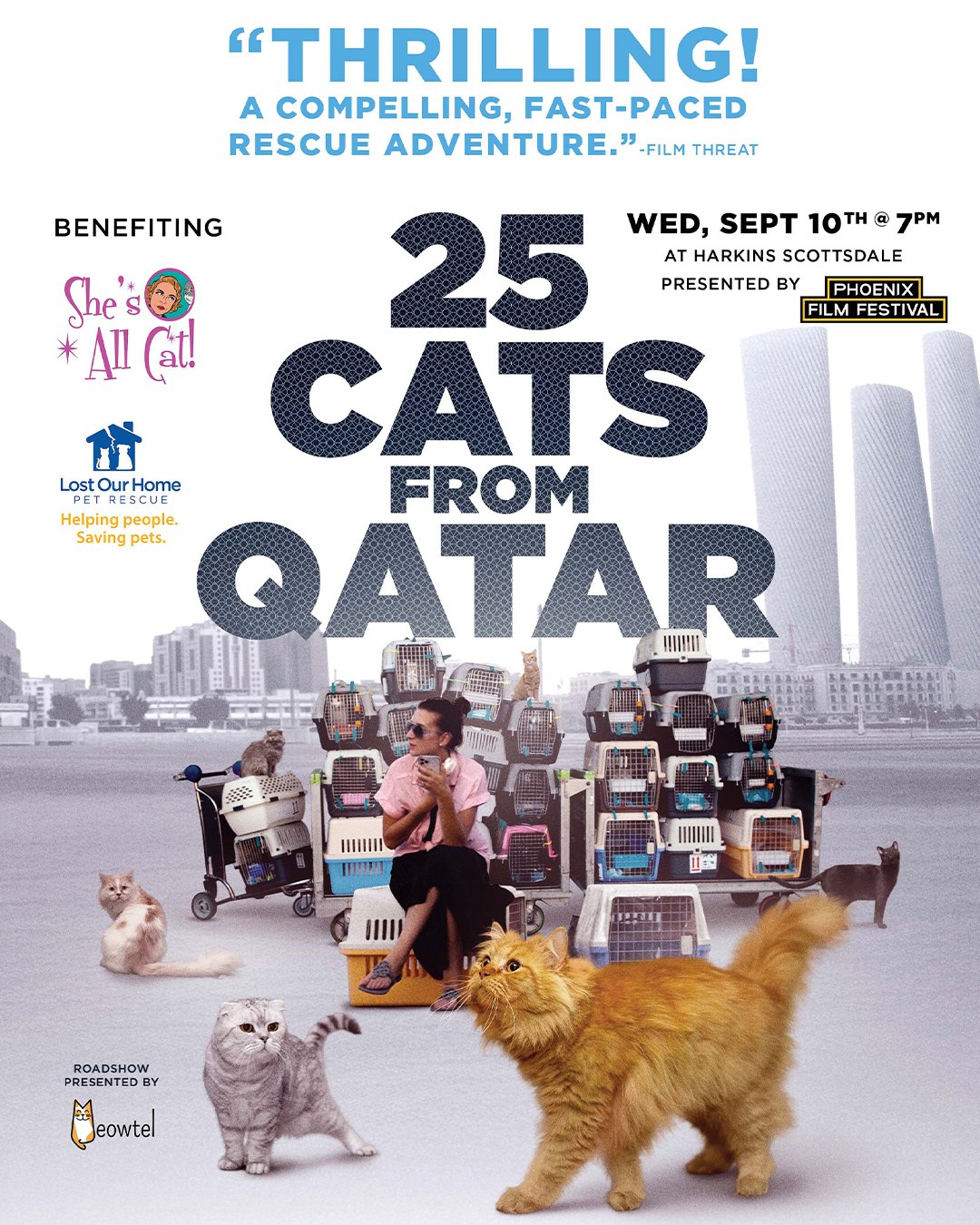 Looking for a couple volunteers to represent LOH at a movie premier for the inspiring 25 Cats from Qatar. An enthusiastic shelter representative or two would be ideal! We'll have a table, recruit some great new volunteers & potential adopters, and answer some questions about Lost Our Home. There's a supply and donation drive included too!